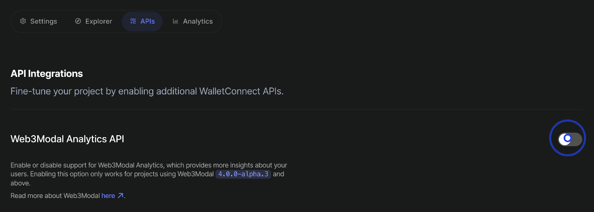 For new users, begin by integrating the latest version of AppKit into your project to simplify wallet connections, user onboarding, and account management. By integrating, you’re automatically opted into Appkit Analytics. You can then access the "Analytics" tab on Dashboard to view your data and start making data-driven decisions for your app's growth. Click here to integrate the latest AppKit version.