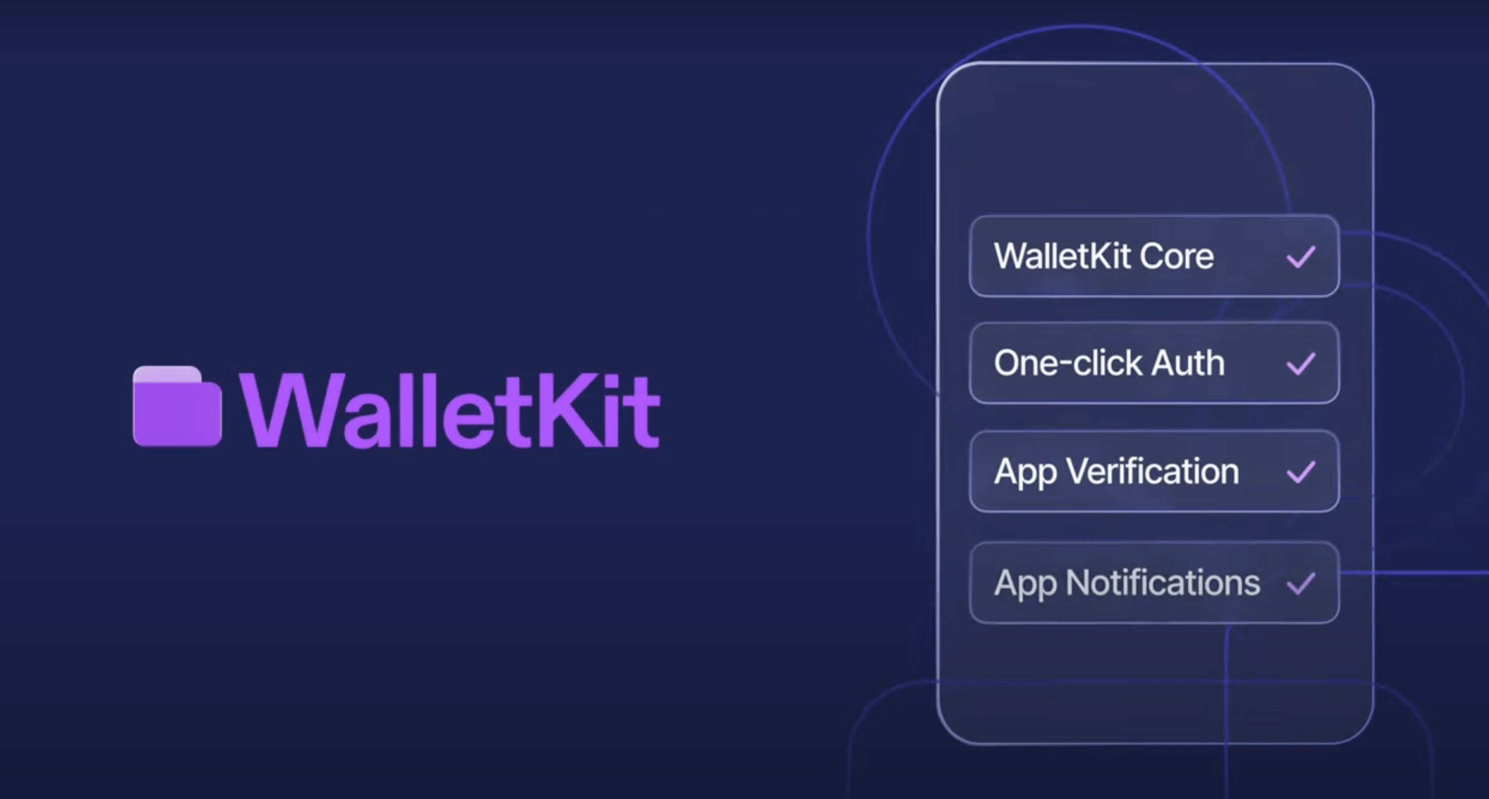 - Confidence and security throughout their journey: Features like One-click Auth, Verify, and Notify make wallet experiences simpler, safer, and more engaging. With WalletKit, support for your users is available at every stage of their journey.