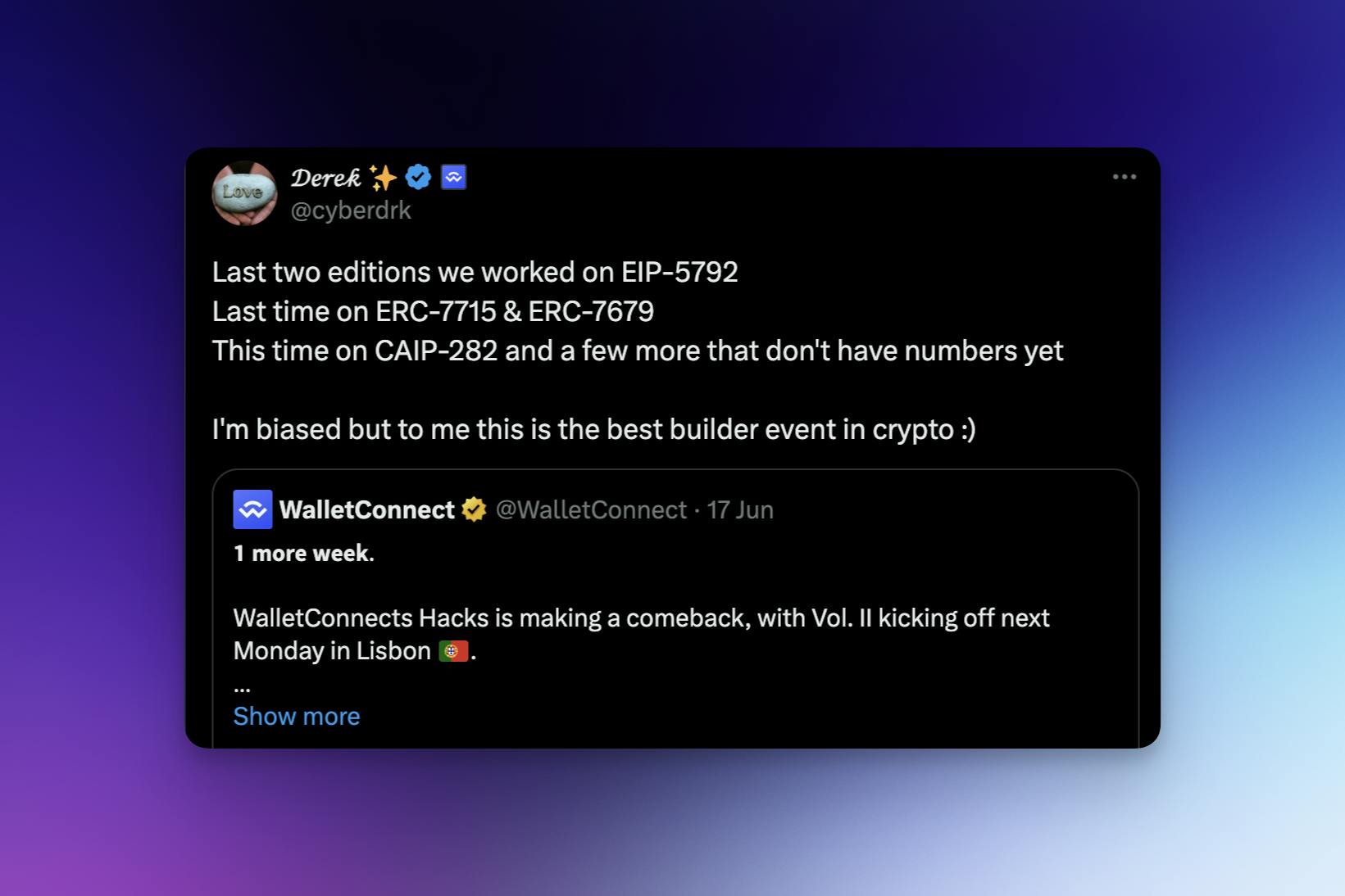 The excitement doesn't stop here. The next WalletConnect Hacks is slated for September this year. We're planning to introduce a consumer track alongside our existing infrastructure tracks at our next WalletConnect Hacks to enhance and expand our collaborative efforts.