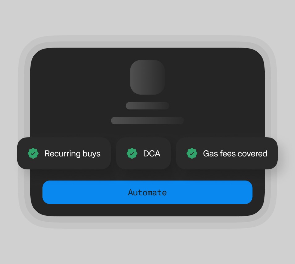 Automate actions like buys or DCA, with no wallet prompts or gas friction. Use signature and chain data to optimize timing and flows.